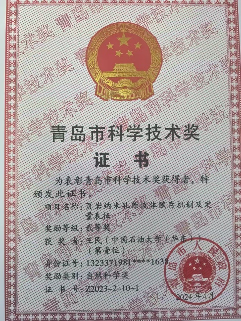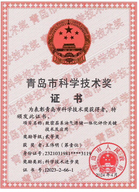2024年8月16日,青岛市科技创新大会召开,对获得2023年度青岛市科学技术奖的项目和人员进行表彰。公司王民教授负责的《页岩纳米孔隙流体赋存机制及定量表征》项目获自然科学二等奖、王伟明副教授负责的《致密层系源储一体化评价关键技术及应用》项目获科技进步二等奖。