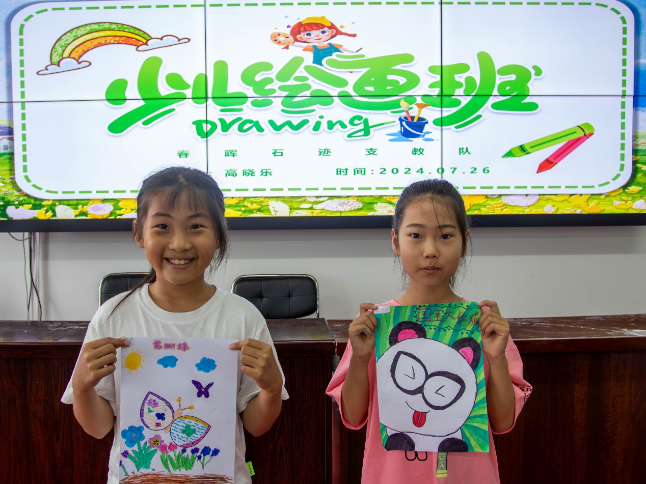 支教期间,为丰富课程内容,促进员工多元化发展,团队开设红色精神、“花泥画廊”手工课程、“小小科学家”科学课程、“快乐少年”体育课程、心理疏导等多门类课程,在注重启发性和趣味性的同时,通过实施差异化教学策略,确保了每位孩子都能在自己的节奏中享受学习。折纸课上,包鑫彤小朋友高举着手中的花朵贺卡喊道,“我要把这个贺卡送给我的妈妈,希望她每天都像花儿一样美丽!”