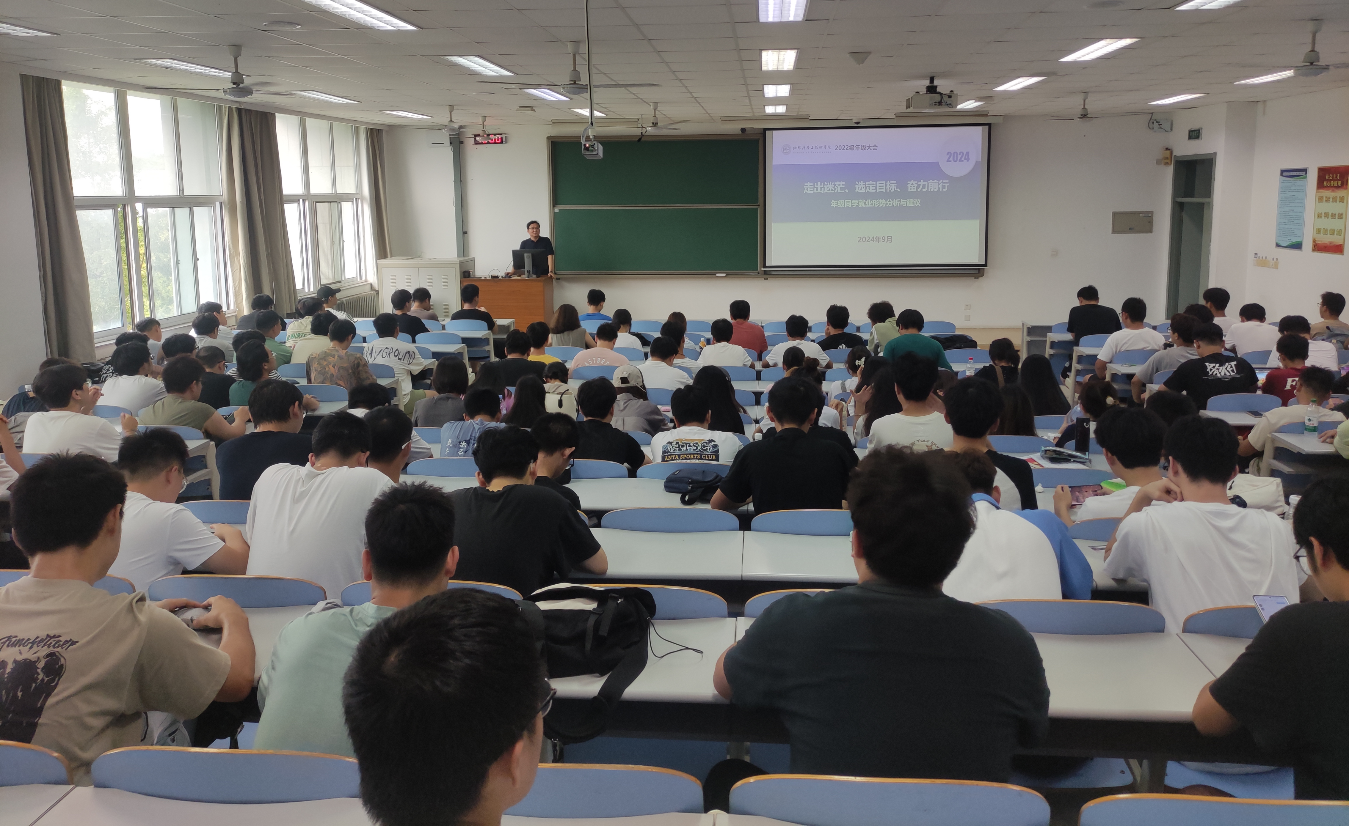 为引导员工地树立发展目标、拓展视野、明确个人规划,9月12日、13日,公司2022级分两场召开年级大会暨考研就业动员会,会议由辅导员王力禾、王圣钧主持,2022级全体员工参加。