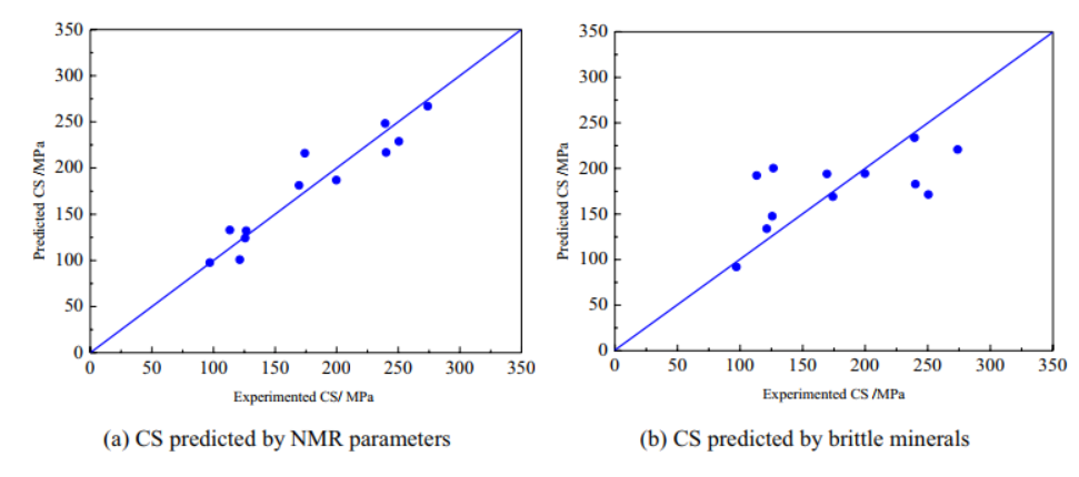 图2.基于核磁共振的抗压强度计算结果与基于脆性矿物的强度计算结果对比