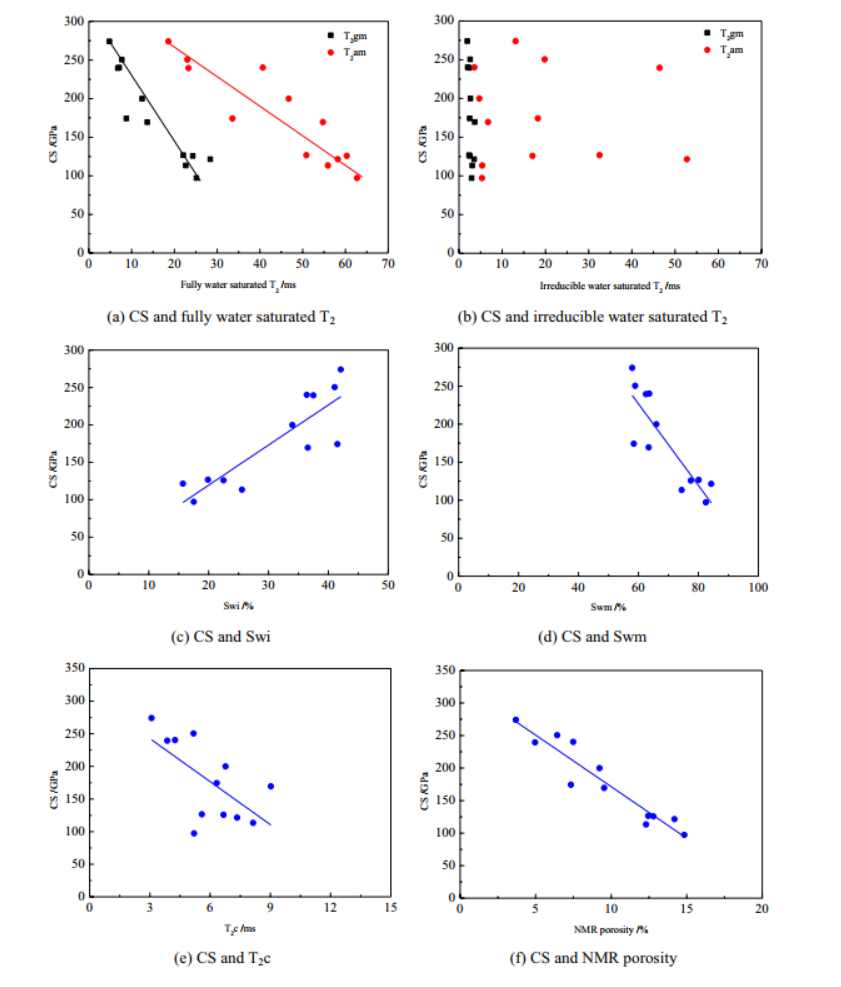 图1.单轴抗压强度与核磁共振T2谱参数的关系
