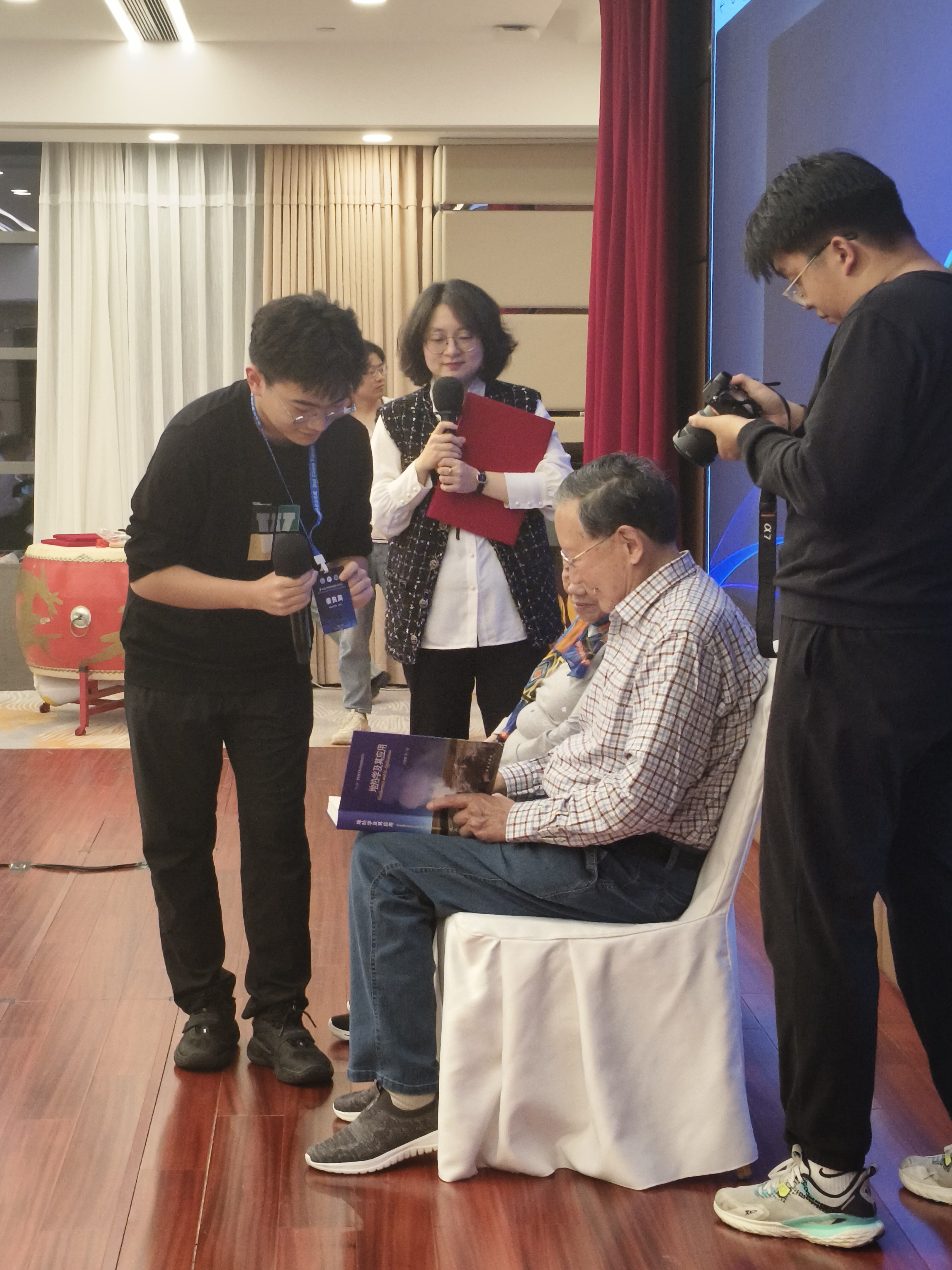 会议期间,中国科学院院士汪集旸亲切地与姜良昊交流,对他们的研究工作给予了高度评价,并鼓励他们在科研道路上继续前行。汪院士还亲自将自己的著作赠予姜良昊,并在扉页上亲笔写下赠言,与其夫人熊亮萍共同签名留念。