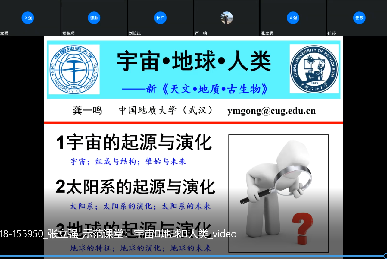 报告人简介:龚一鸣,男,湖北武汉人。“万人计划”国家级教学名师,全国模范教师,首批全国高校黄大年式教师团队——地质学教师团队负责人,地史古生物学国家教学团队负责人,教育部课程思政示范课程教学名师,教育部首批虚拟教研室——地球生物学课程虚拟教研室带头人,享受国务院特殊津贴专家。湖北省师德标兵和有突出贡献的中青年专家,湖北省楚天园丁奖和五一劳动奖章获得者。中国地质大学(武汉)二级教授,博士生导师。曾任地大公司产品工作指导委员会主任。曾获国家级教学成果奖二等奖,湖北省教学成果奖特等奖和一等奖,省部级科技成果奖一等奖等奖项,发表SCI论文100余篇,主持建成4门次国家级在线课程和“地史学”国家级一流本科课程,出版《大学的从教之道》、《地球的过去与未来》、《地层学基础与前沿》等教材和专著10余部。