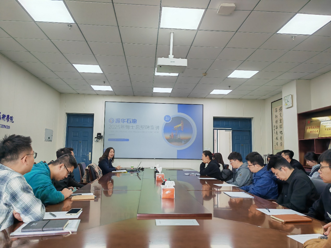 10月25日,振华石油控股有限公司(以下简称“振华石油”)在工科楼C座251召开博士招聘宣讲会。振华石油人力资源部业务经理刘月来院宣讲,研究生辅导员栗磊主持会议,学校20余名博士参加座谈。