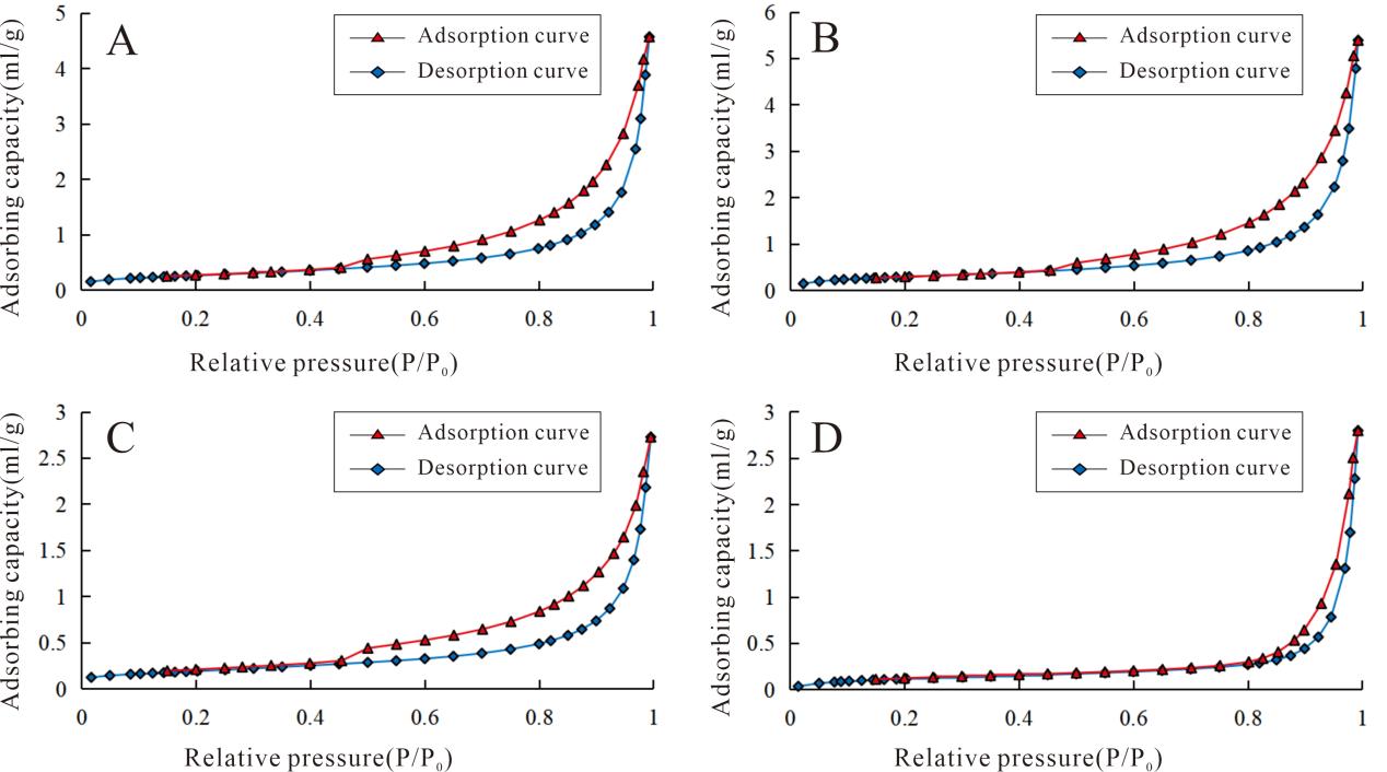 图1. 胜北洼陷三工河组低温氮气吸附-解吸曲线
