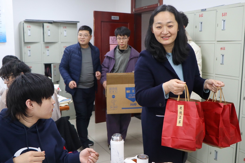 老师为考研学子分发上岸福袋 郑凯升摄