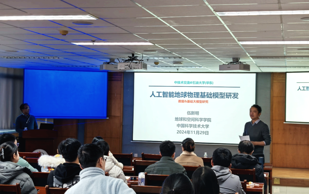 11月29日下午,学院在工科楼C座757报告厅举办了地球物理领域人工智能专题报告,斯坦福大学研究科学家刘明亮博士,VIRIDIEN(原CGG)人工智能实验室负责人侯嵩博士,中国科学技术大学伍新明教授三位地球物理领域人工智能专家齐聚地学讲坛,为公司师生开展学术报告,分享未来人工智能在地球物理领域的前沿发展方向。曹丹平教授主持报告,学院100余名师生参加报告会。