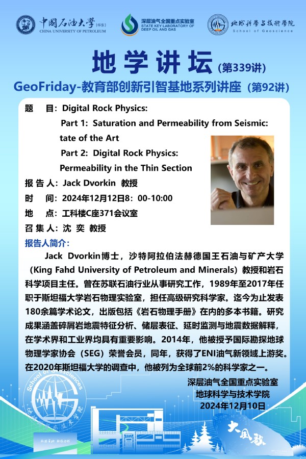 【地学讲坛第339讲】关于 Jack Dvorkin 教授 《Digital Rock Physics》系列学术报告的通知