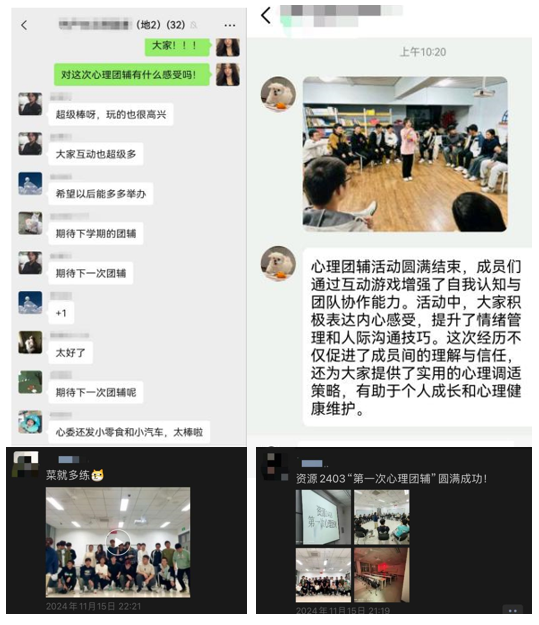 通过系统开展心理健康教育互动,2024级各班级增强了班级凝聚力,营造了积极良好、和谐友善的班级环境,逐步使同学们更加积极的面对生活、学习,营造起“传播青春能量,用爱勇毅前行”的良好氛围。