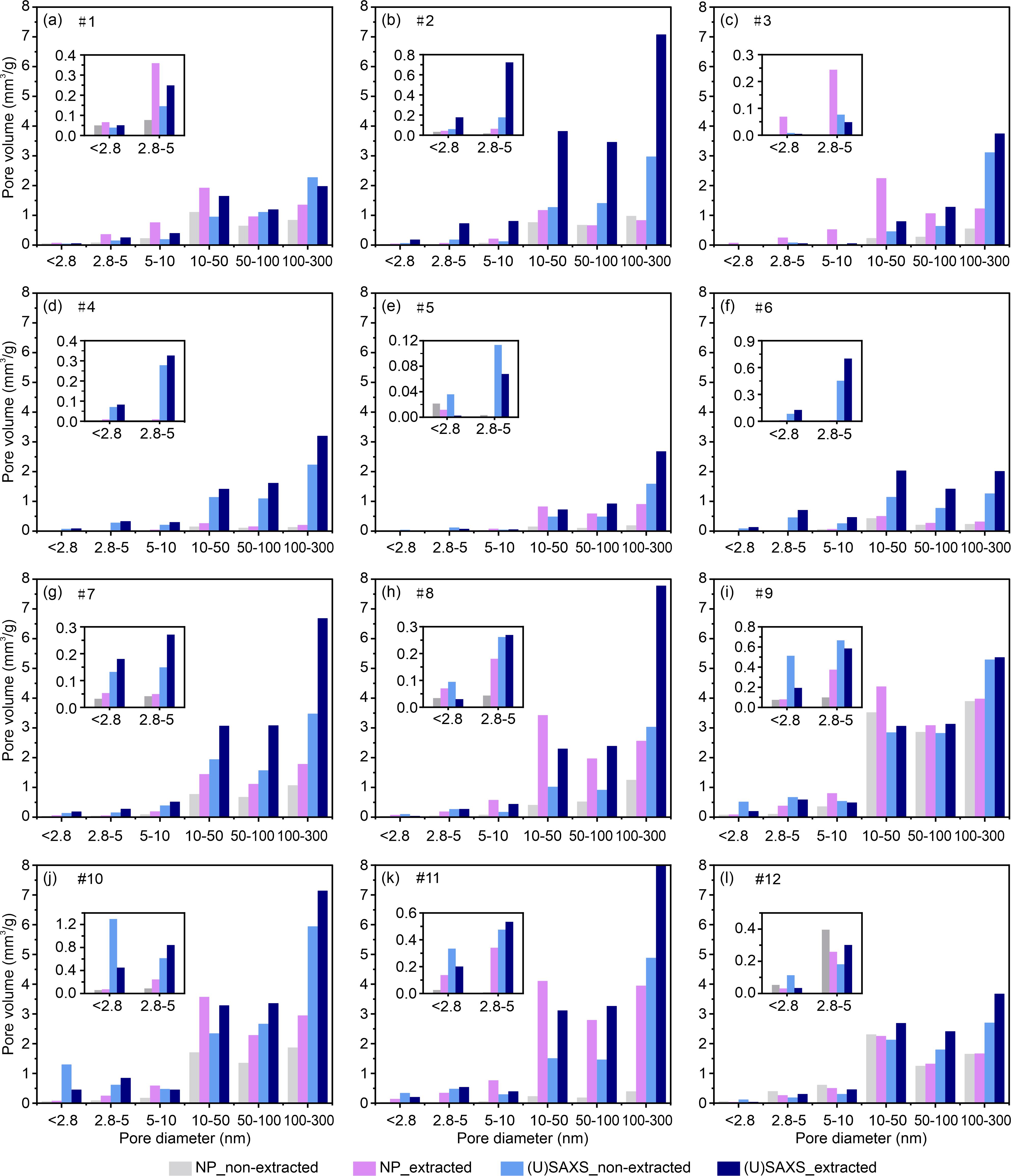 图2 溶剂萃取前后纳米级孔隙(2~300 nm)不同孔径区间的孔隙体积