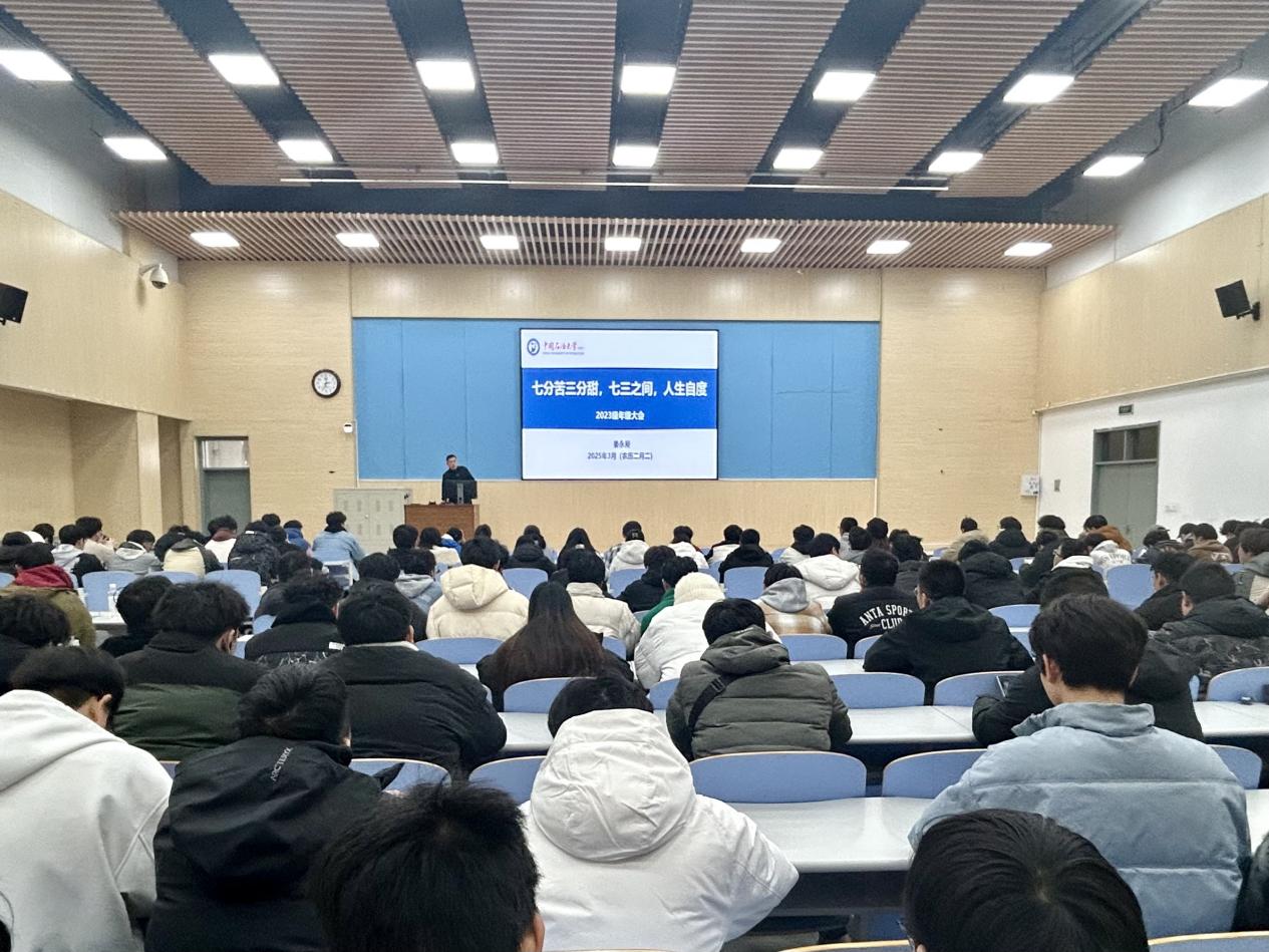 为引导同学们学会自我成长,明确新学期目标,迅速进入大学学习生活状态,3月1日下午,学院于南教楼300号报告厅召开2023级本科生新学期年级大会。学院2023级辅导员姜永昶、刘牧原及全体2023级本科生参加会议。