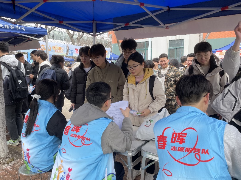 3月5日,在学校第二十届志愿服务节“有爱公益”集市上,春晖志愿者现场为同学们介绍春晖志愿服务队三十余年来奉献、坚守、传承的历程,并组织丰富的活动。志愿者组织开展“学雷锋”知识问答活动,并鼓励同学们在明信片上为偏远山区小学的孩子们写祝福。现场还设置“蒙眼找玻璃珠”环节,真实模拟视障人士日常生活,旨在引导同学们关爱生活中的残障人士。