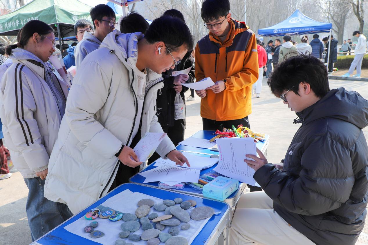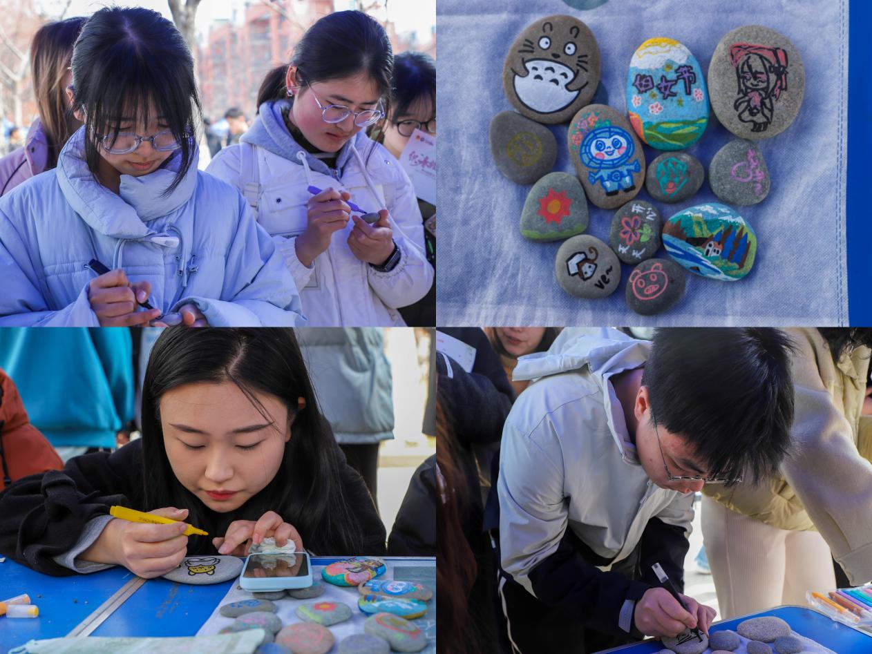 活动现场,伟德国际1946官网精心策划的“岩石彩绘工坊”成为焦点,它以独特形式唤醒参与者们的艺术潜能,令参与者纷纷化身“岩石艺术家”。以天然石块为画布,选用多彩颜料勾勒伟德国际1946官网吉祥物、动画人物或山川图案,平凡的岩石瞬间焕发新生。不少同学选择与同伴协作创作,现场欢声笑语不断。许多同学自信地向镜头展示并选择留下自己的绘画作品,这些精美的艺术作品吸引了更多参与者的兴趣,岩石彩绘工坊摊位前络绎不绝。