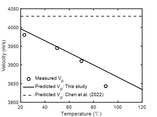 图2. P波速度理论预测与实验测量结果的变化
