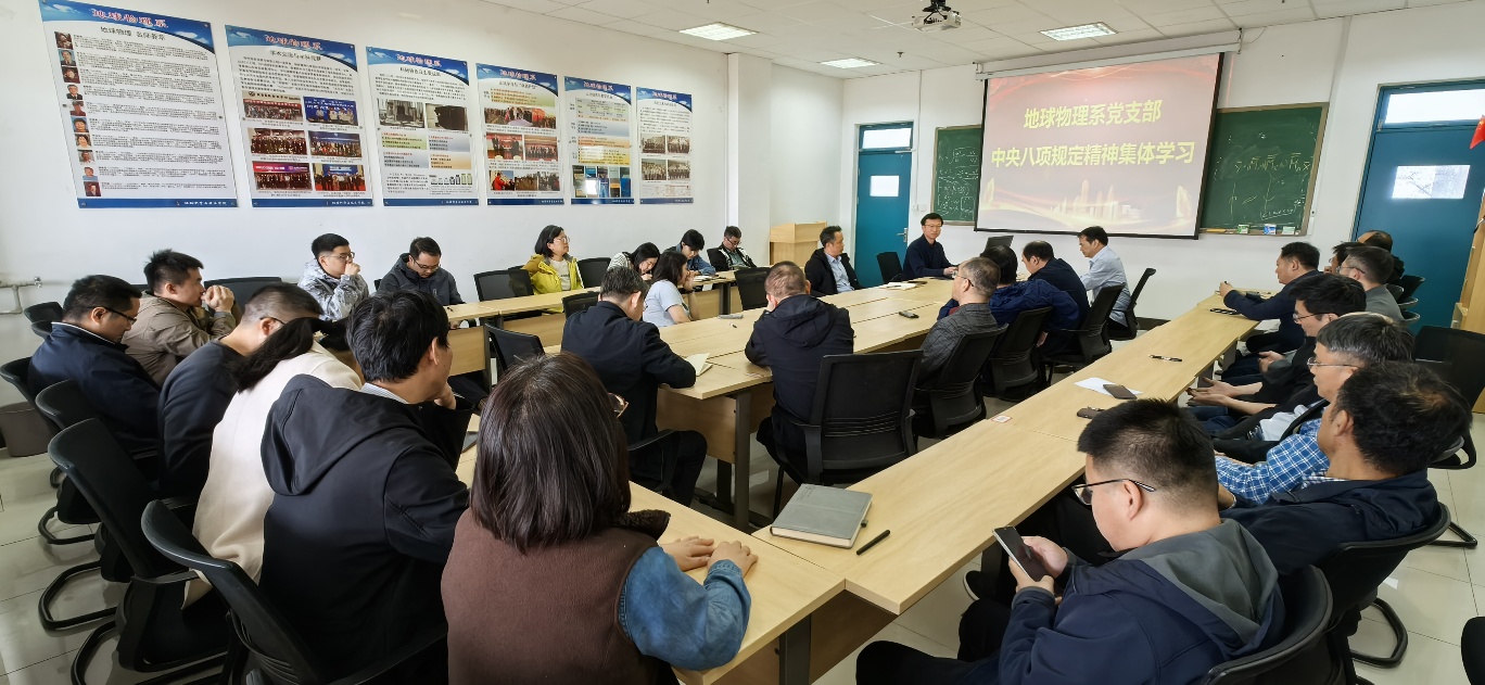 2025年3月25日,地球物理系党支部于C371会议室召开了“学习贯彻中央八项规定精神、落实全国两会精神”主题党日活动暨2024年度组织生活会,传达了学院深入贯彻中央八项规定精神学习教育工作安排,会议由地球物理系党支部书记张凯主持。