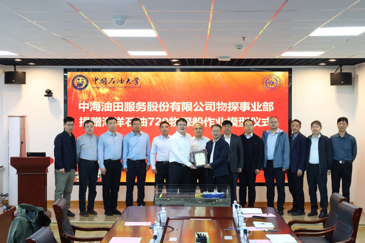 为进一步深化校企合作,推动科技创新与人才培养协同发展, 5月9日上午,中海油田服务股份有限公司(以下简称“中海油服”)来院交流并举行海洋石油720物探船作业模型捐赠仪式。