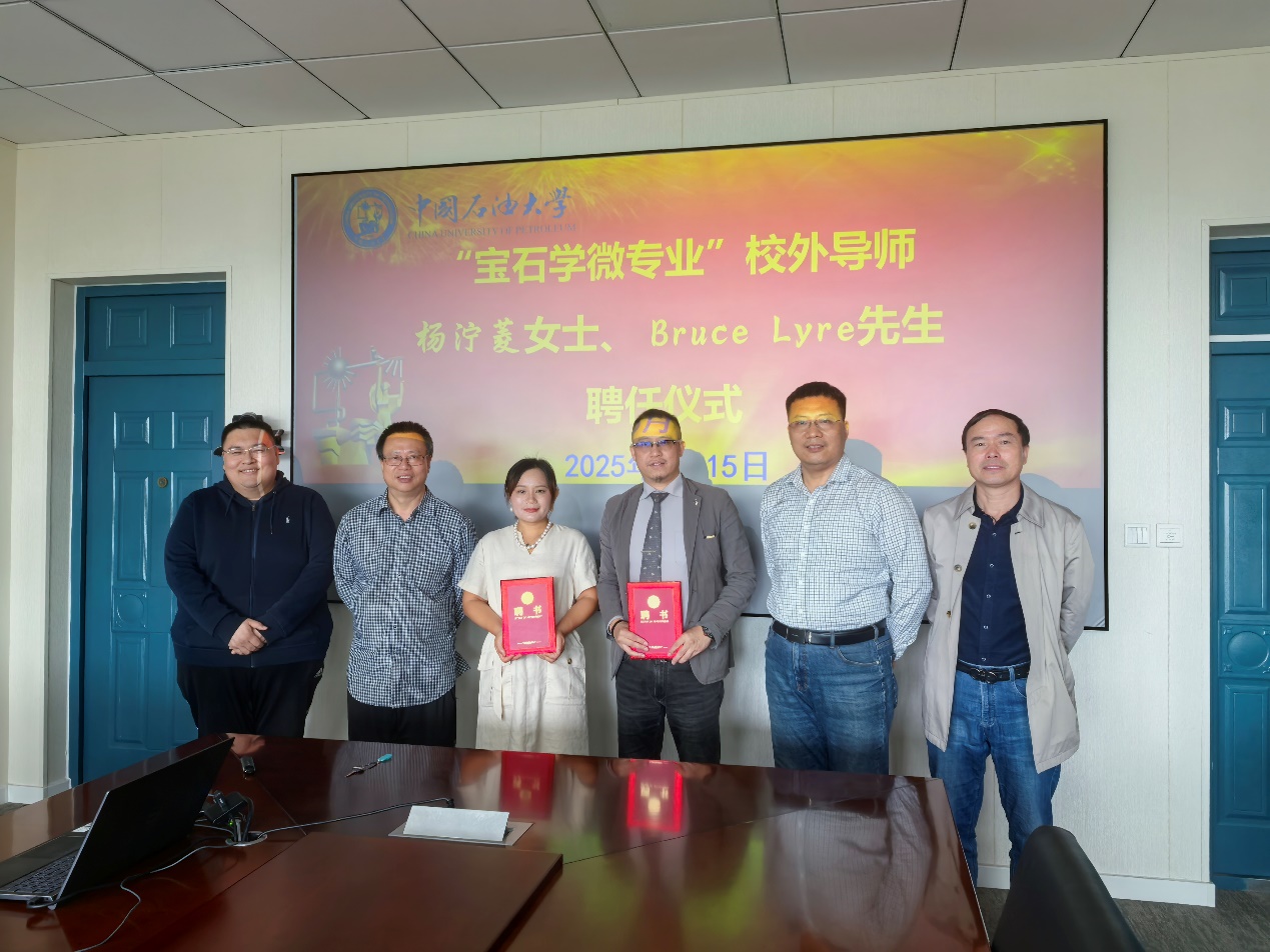 5月15日,学院举办了聘任仪式,聘请杨泞菱和Bruce Lyre为“宝石学微专业”校外导师,为微专业员工提供行业实践指导、职业发展建议及学术支持,帮助他们在课堂学习与社会需求之间建立桥梁。