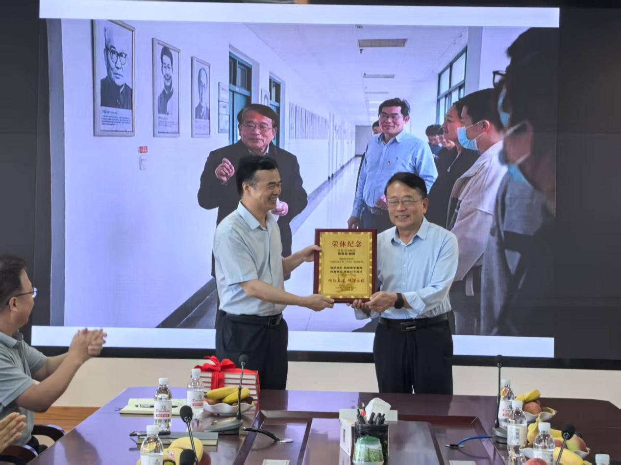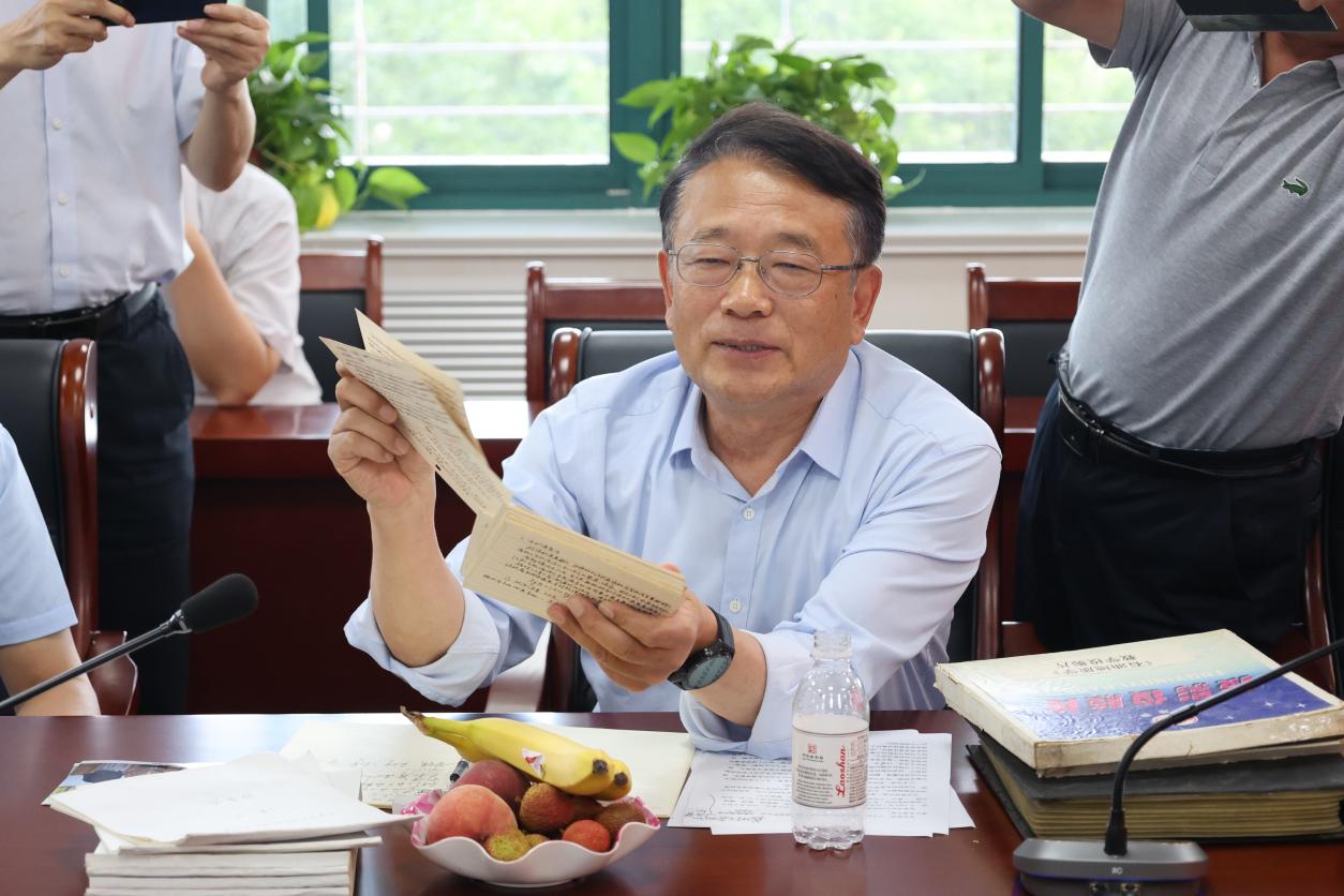 仪式最后,牛庆玮代表学院接受蒋老师捐赠的胶片、手写教案、提示手卡等珍贵的教学资料。牛庆玮表示,蒋老师是传承了北京石油学院时期教书育人精神的勘探人,在多个方面创造了学校的“首个”“第一”。希望学院教师都能以蒋老师为榜样,传承弘扬蒋老师的大家风范和教学科研精神,为学院事业高质量发展贡献自己的力量。