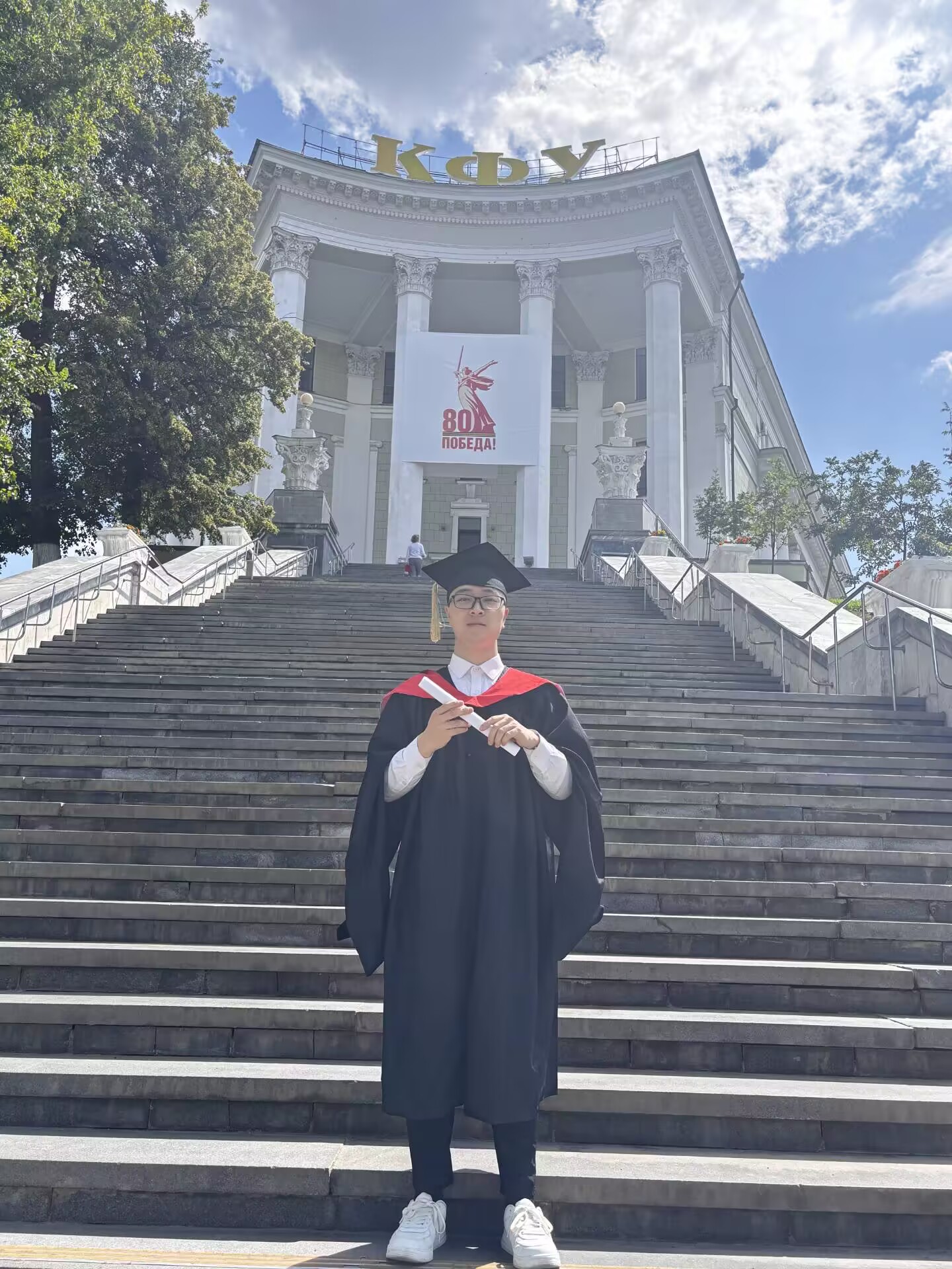 近日,俄罗斯喀山联邦大学举行了2025年毕业典礼,来自公司的4名研究生被授予喀山联邦大学硕士学位,这是学院首批通过校级协议选派并获得对方高校硕士学位的研究生,4位同学在完成专业课程学习外,还积极学习俄罗斯语言和文化并参加在俄罗斯举办的金砖国家论坛。2019年学校同俄罗斯喀山联邦大学建立合作关系并签署校际MOU,随后借助国家留学基金委项目资助多次派出员工到该校进行联合培养。2023年在两校的共同努力下,双方扩大合作签署了地球科学双硕士学位联合培养项目。根据双方协议,研究生首先在伟德BEVlCTOR1946完成了第一年的学习,第2年通过项目选拔的公司研究生将在喀山联邦大学进行了为期1年的学习,满足喀山联邦大学的学分并通过该校的论文答辩后将被授予喀山联邦大学的硕士学位。第3年,研究生将返回学校继续按照伟德BEVlCTOR1946的规定,完成后续的学习、科研和论文撰写。