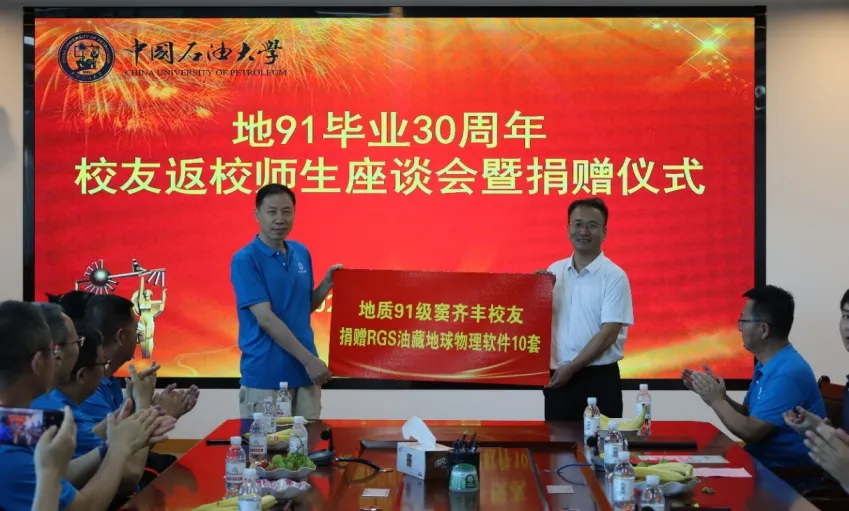 杨葵员工代表窦齐丰员工捐赠RGS油藏地球物理软件10套