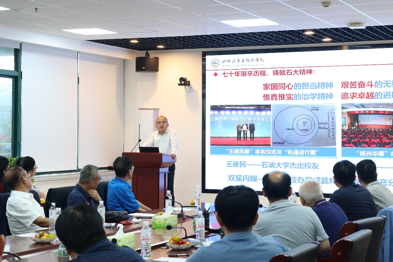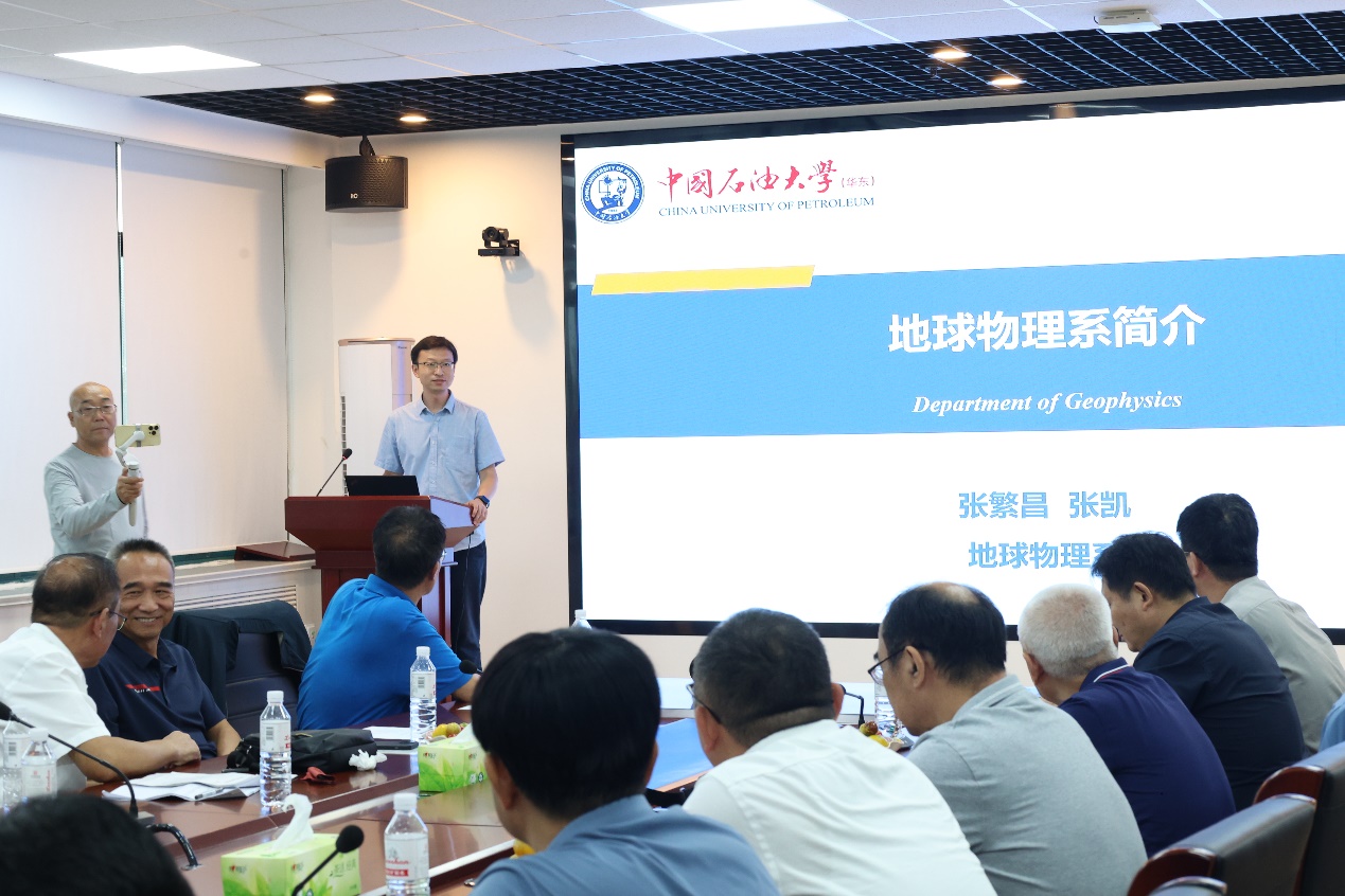 宗兆云向员工们详细介绍了学校学院近年来在团队建设、人才培养、科学研究等方面取得的跨越式发展。他表示,学院正抢抓“双一流”建设机遇期,不断加强内涵发展,提高实力水平,朝着建成油气地学学科世界一流的高水平研究型学院阔步前行。地球物理系党支部书记张凯汇报了地物系近年来的发展变化,特别是在团队队伍建设、前沿科研攻关及产学研融合等方面取得的丰硕成果。