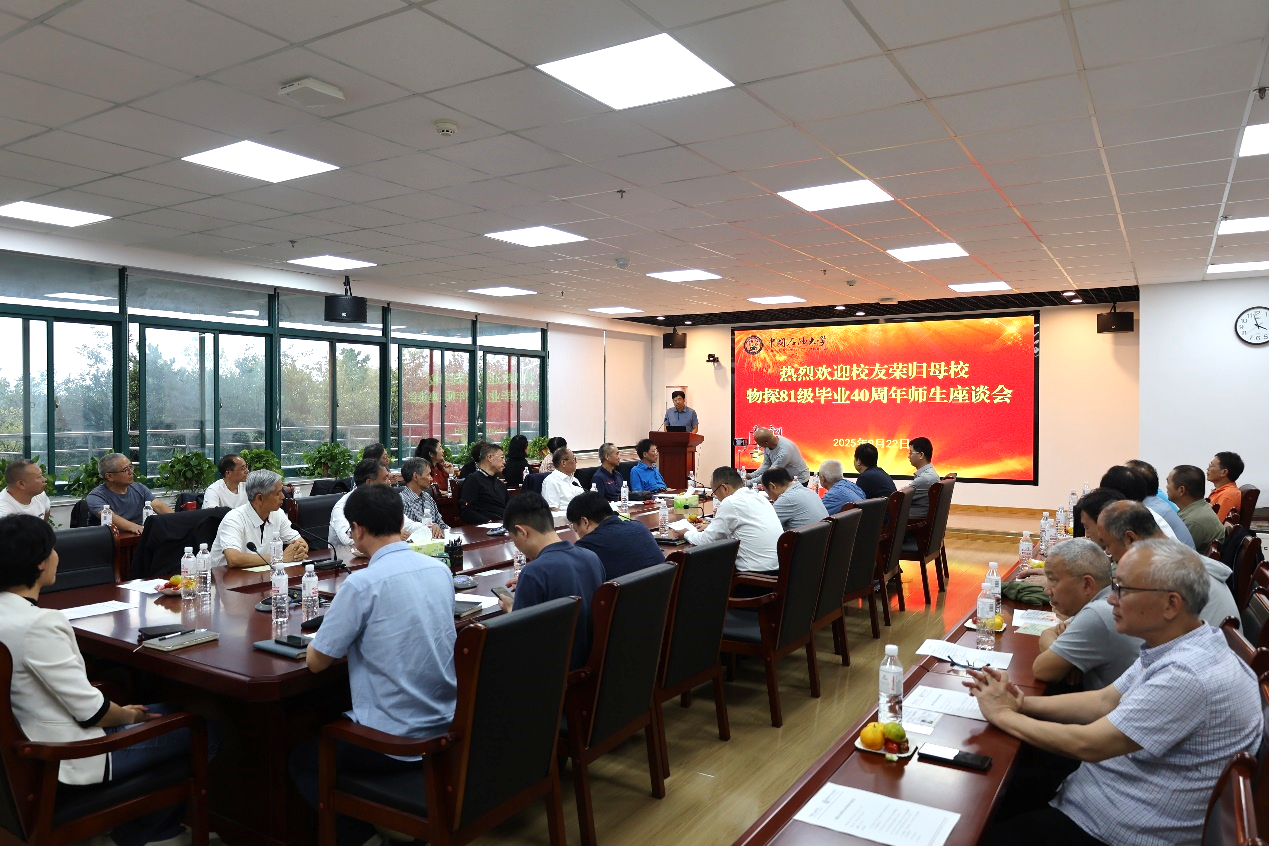 9月22日下午,秋阳和煦,情谊融融。学院在工科楼C座271会议室隆重举行了物探81级员工毕业40周年师生座谈会。学院经理宗兆云、党委书记牛庆玮,副经理孟凡超、党委副书记穆洋洋,地球物理系班子全体成员和老教师代表印兴耀老师、李振春老师、栾述文老师,与从祖国四面八方荣归母校的物探81级员工们欢聚一堂,共同追忆青葱岁月,畅谈学院发展,现场气氛温馨而热烈。