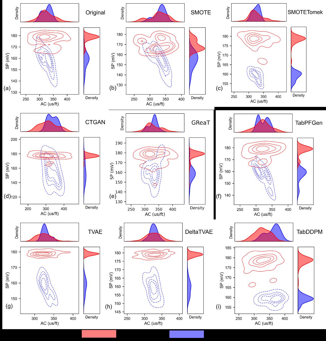 增强后数据集的可靠性是研究人员关心的问题,该工作的创新之处在于提出的工作流对多种前沿岩心数据增强技术进行了不同规模合成数据的可靠性分析(图2,3)。其次,该工作流将数据增强算法分别与机器学习、预训练语言模型集成在一起,通过开发和应用增强预测模型的多种组合,来实现实例井中的岩性分类和物性参数预测。