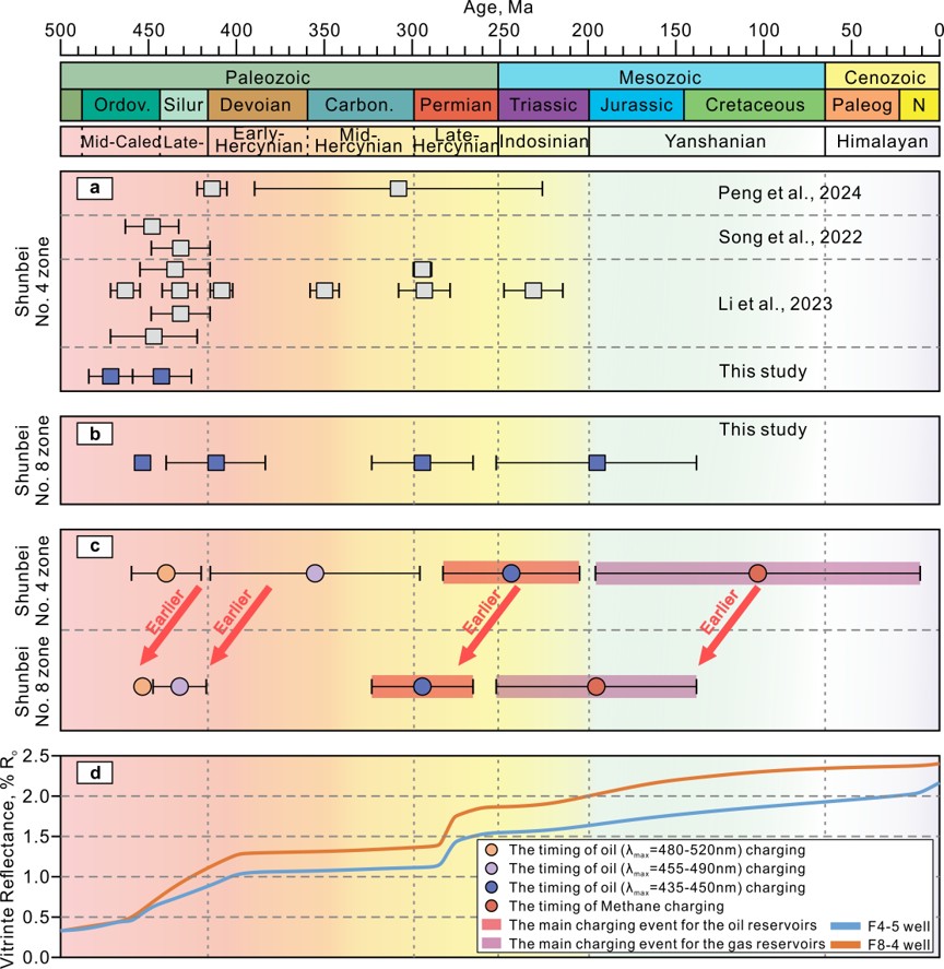 伟德BEVlCTOR1946郝芳院士团队以顺北油气田两条主要走滑断层(顺北4号和顺北8号走滑断层)为研究对象,通过方解石脉的U-Pb定年确定走滑断层活动的绝对时间,并重建构造历史;在U-Pb地质年代学框架内,通过流体包裹体分析建立多阶段油气充注的年代学;通过综合地球化学和时间分析,识别主要的聚集事件。通过阐明断层激活与油气迁移之间的时空关系,量化了关键时期的成藏因素,重建了不同走滑系统之间的差异聚集过程,以及推进了对超深层、受断层控制的环境中油气富集机制的理解。