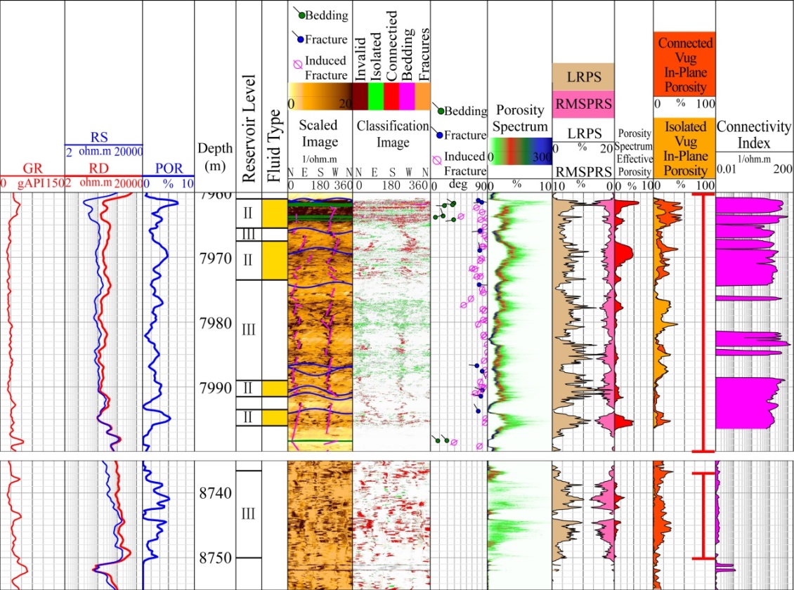 电成像由于纵向分辨率高成为解决碳酸盐岩储层问题的关键资料,电成像数据刻度是资料定量评价的基础。目前主流的电成像测井刻度方法为双对数坐标系下的分段线性刻度,该方法在强非均质性碳酸盐岩地层数据刻度存在误差大的问题,降低了后续一系列电成像定量评价精度。研究改进了传统的电成像数据刻度方法,实现了不同类型电成像仪器资料的统一逐点刻度与定量处理,降低了由于传统刻度方法人为因素导致的误差。在此基础上,采用电成像孔隙度谱等定量处理成果评价储层中的裂缝及孔洞,表征储层的有效性。