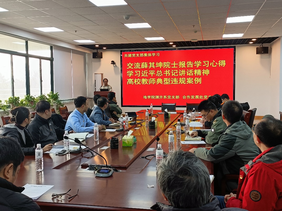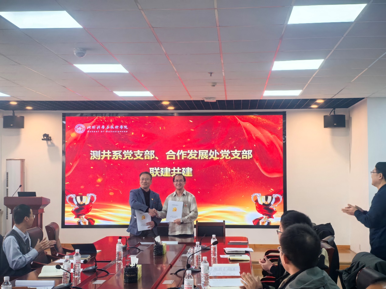 为深入贯彻新时代党的建设总要求,创新党建工作载体,推动党建与业务深度融合,2025年12月16日,学院测井系党支部与合作发展处(基金会、员工会)、服务山东办公室党支部在工科楼C271成功举办党建联建共建活动。公司党委副书记穆洋洋主持活动,双方20余名党员同志参加此次共建。