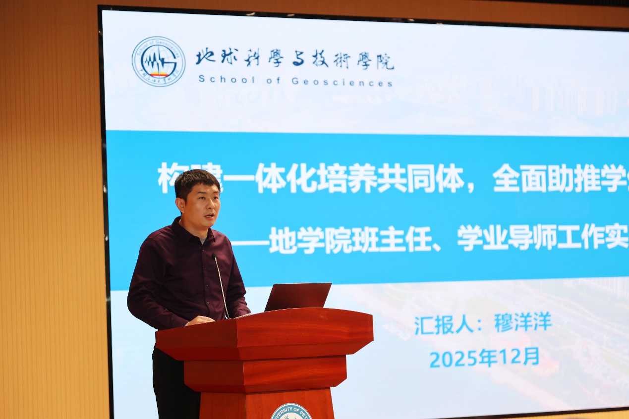 穆洋洋首先从生源和专业认同情况分析了学院人才培养工作面临的困境,并系统介绍了学工队伍、教学副经理、各系分管教学副主任、学业导师、教学秘书联动,以及学工队伍、各系副书记、班主任联动的“双联动”一体化育人工作体系,班主任重点围绕班级建设、学风建设、职业生涯规划,学业导师重点围绕学业指导、创新创业教育、专业认知教育,与辅导员形成育人合力。接下来,穆洋洋从三个方面具体汇报了学院班主任、学业导师工作开展情况。一是聚焦顶层设计,筑牢制度保障和组织根基。学院以制度建设为核心,通过完善制度体系、优化队伍配置、健全联动培育机制三维发力,夯实班主任工作根基。二是聚焦关键环节,强化思想引领和学风建设。学院紧扣育人主线,引导班主任、学业导师深入员工中间,精准开展思想政治教育和关心关爱工作,实现思政育人、学术育人、实践育人有机融合,强化师生情感联结。三是聚焦育人实效,彰显实践成果与教育担当。在师生共同努力下,班级内在活力不断激发,班级建设取得一系列积极成效。学院连续10年获评十佳班主任,“十四五”先进班集体达标率较“十三五”提升超20%,连年获评学校优良学风标兵班、首批十佳班集体等。近五年平均就业率超94%,超75%赴“三油一调”等国家能源企业,本科升学率超60%。