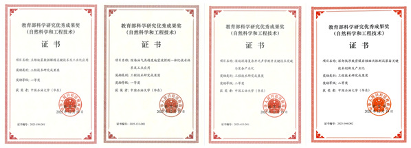 符力耘教授负责完成的“深海油气高精度地震波探测一体化技术体系及工业应用”以及印兴耀教授负责完成的“五维地震数据解释关键技术及工业化应用”获得工程技术研究成果奖一等奖;苏远大教授负责完成的“深地深海复杂井况声学测井关键技术突破与装备产业化”获得工程技术研究成果奖二等奖,葛新民、范宜仁教授参与的“深部低渗致密煤岩核磁共振测试装备关键技术创新及产业化”获得工程技术研究成果奖二等奖。